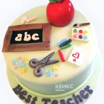 Торт на День воспитателя нежно-зеленый с канцелярией