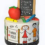 Торт на День воспитателя с доской маркерами и яблоком из крема