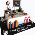 Торт на День воспитателя с фигуркой котом и канцелярией