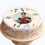 Этот торт создан специально для Дня воспитателя – он излучает теплоту и признательность. На белоснежном креме ярко выделяется фотопечать, которая делает подарок по-настоящему личным. По краям – нежная посыпка, добавляющая торжественности. Лаконичные аппликации дополняют композицию, подчеркивая праздничное настроение. Торт выглядит одновременно трогательно и нарядно, будто создан для того, чтобы сказать «спасибо» самым важным людям.
