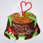 Торт на деревянную свадьбу в виде пенька с инициалами