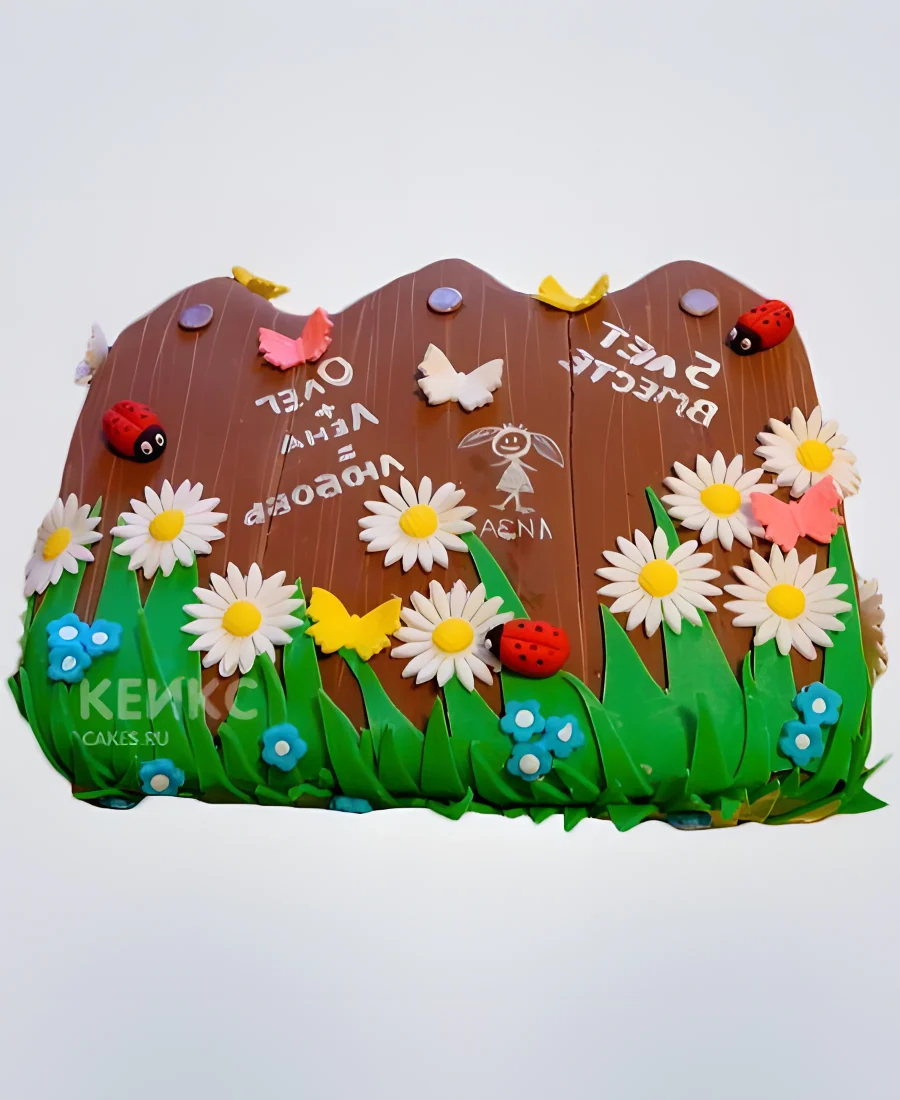 Торт на деревянную свадьбу забор с надписями и ромашками