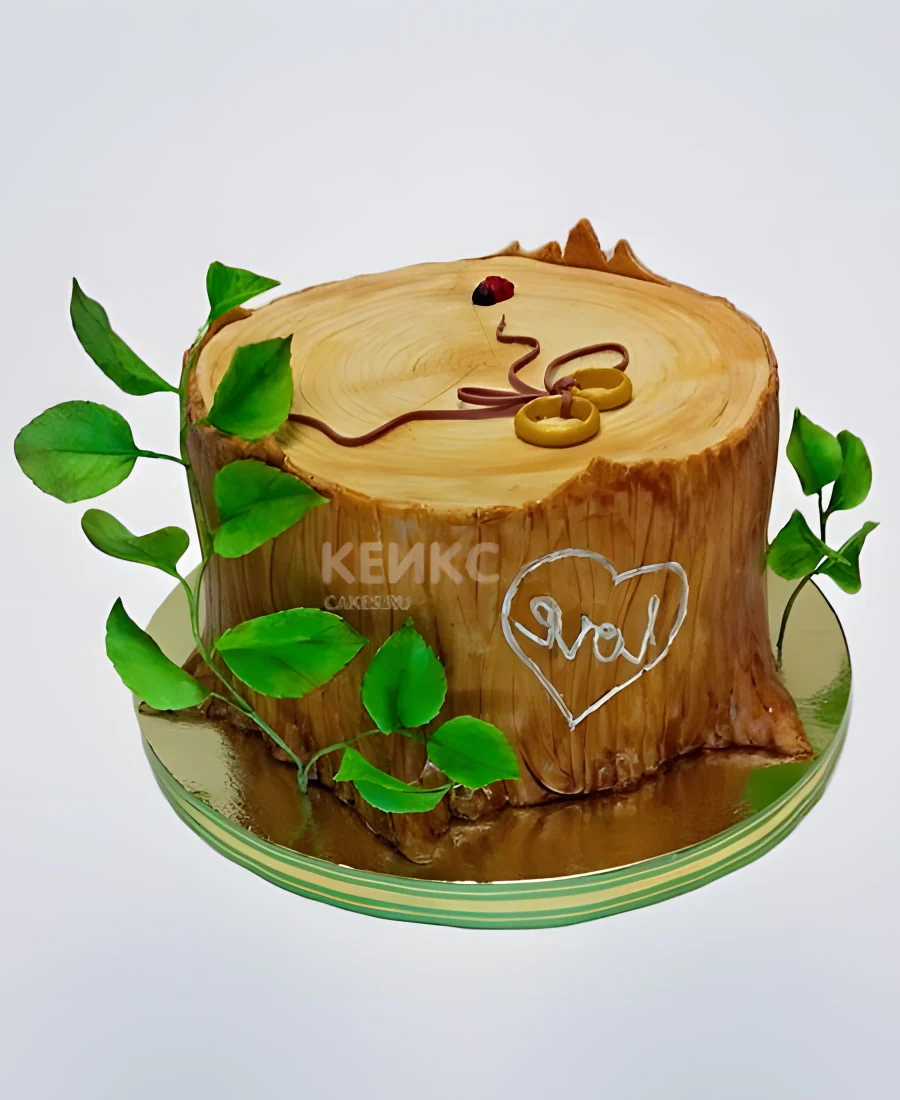 Торт на деревянную свадьбу с кольцами для молодожёнов