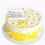 Нежный кремовый торт в пастельных тонах украшен изящными цветами ручной работы. Золотистая табличка с цифрой «9» и парой голубков символизирует фаянсовую свадьбу. Перламутровые жемчужины и воздушные кремовые розочки создают ощущение праздника и романтики. Лаконичный и элегантный дизайн передает теплоту долголетнего союза.
