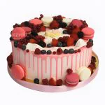 Торт ягодный с розовыми потеками и макарунс