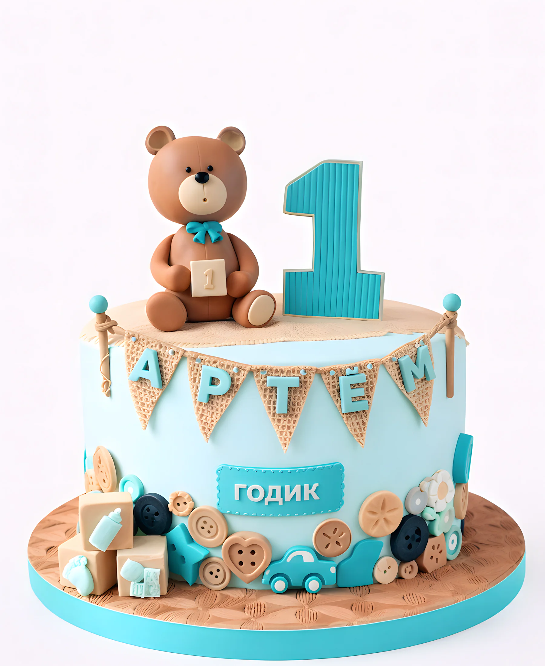 Детский торт на день рождения 1 год с мишкой