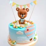 Торт на день рождения ребенку с воздушными шарами и мишкой