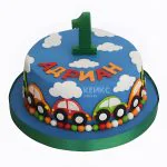 Торт синий с облаками и машинами