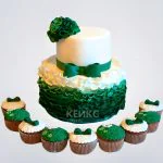 Торт на изумрудную свадьбу с рюшами и капкейками