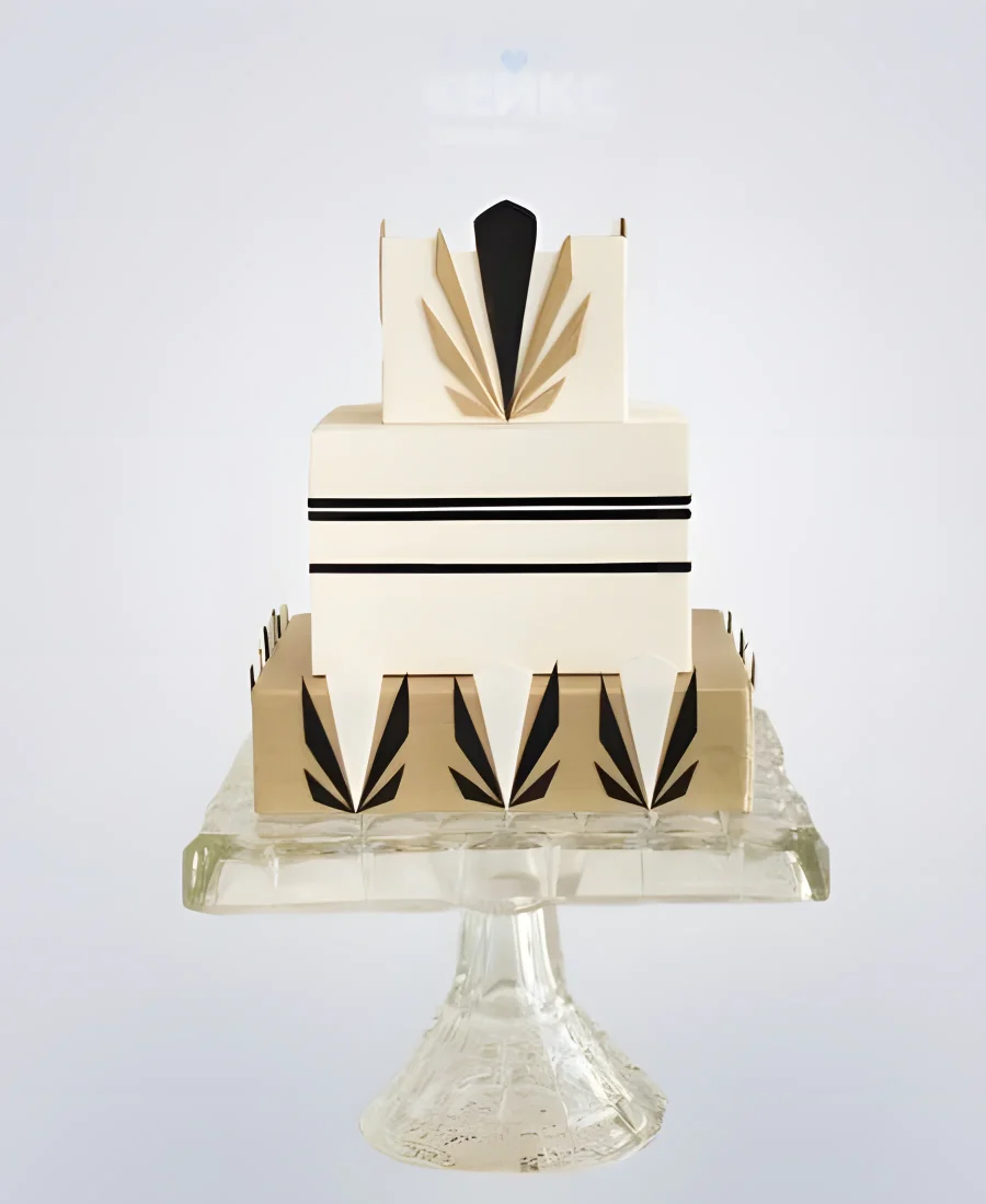 Строгий квадратный торт на корпоратив в бежевых тонах