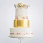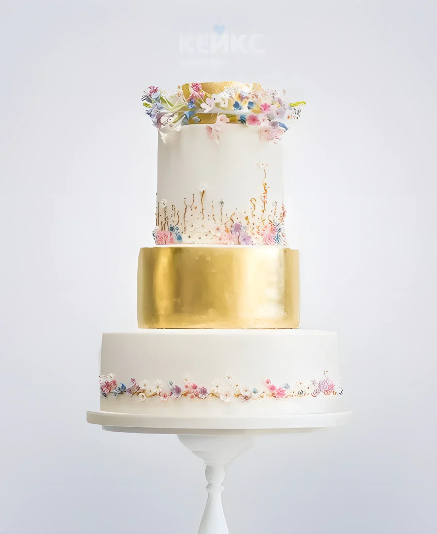 Бело-золотой торт с маленькими цветочками на корпоратив