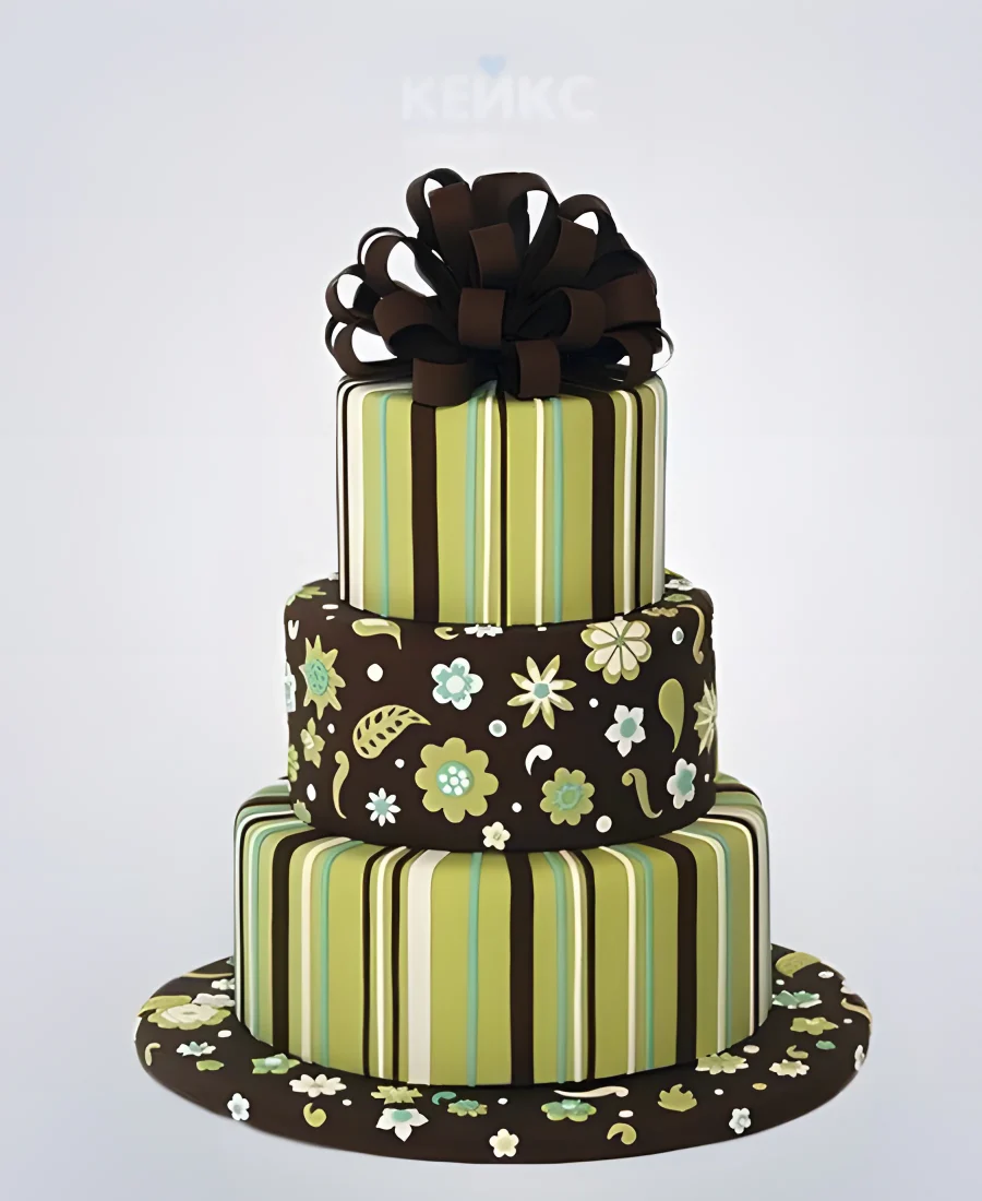 Торт в полоску с бантом на корпоратив