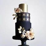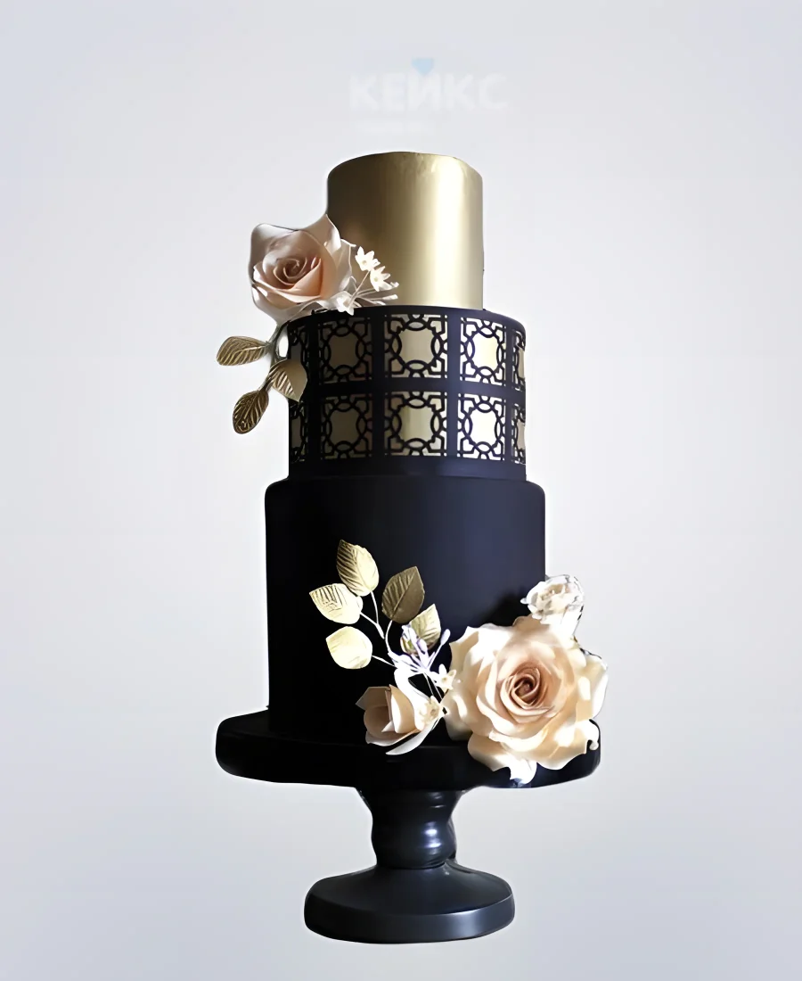 Золотисто-синий торт с цветами на корпоратив