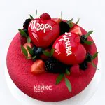 Торт на льняную свадьбу с именами и ягодным ассорти