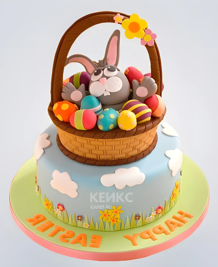 Торт с кроликом и яйцами на пасху