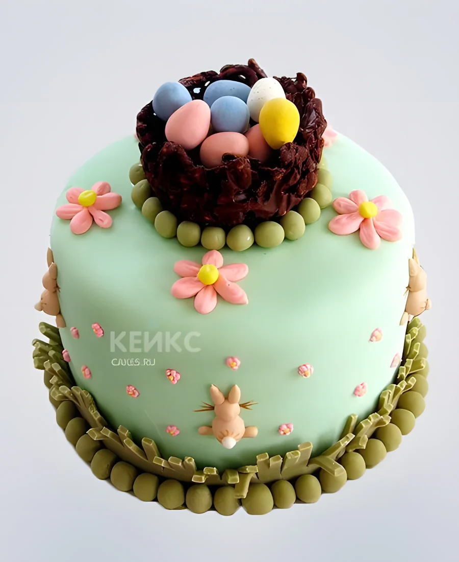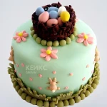 Торт на пасху в виде корзинки с яйцами