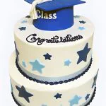 Торт на Получение диплома двухъярусный со звездами и шапочкой