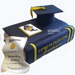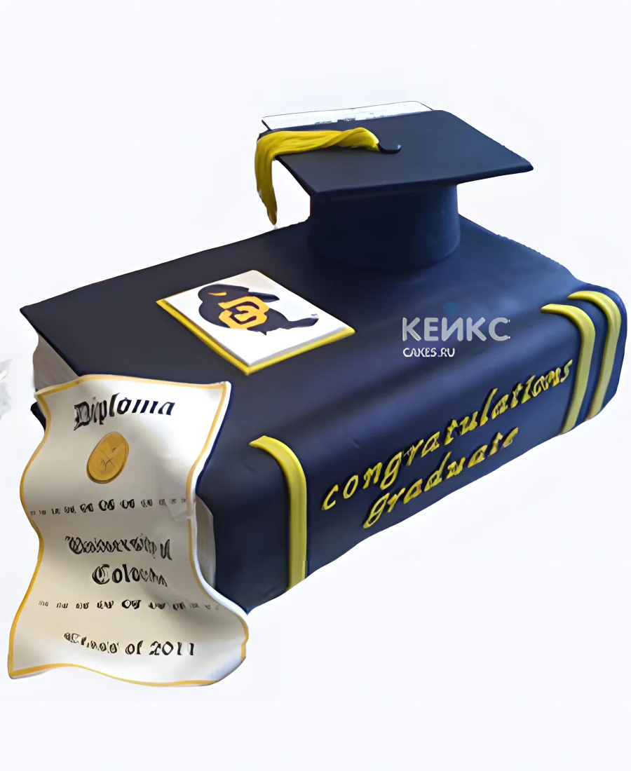 Торт на Получение диплома в форме книги с шапочкой и дипломом