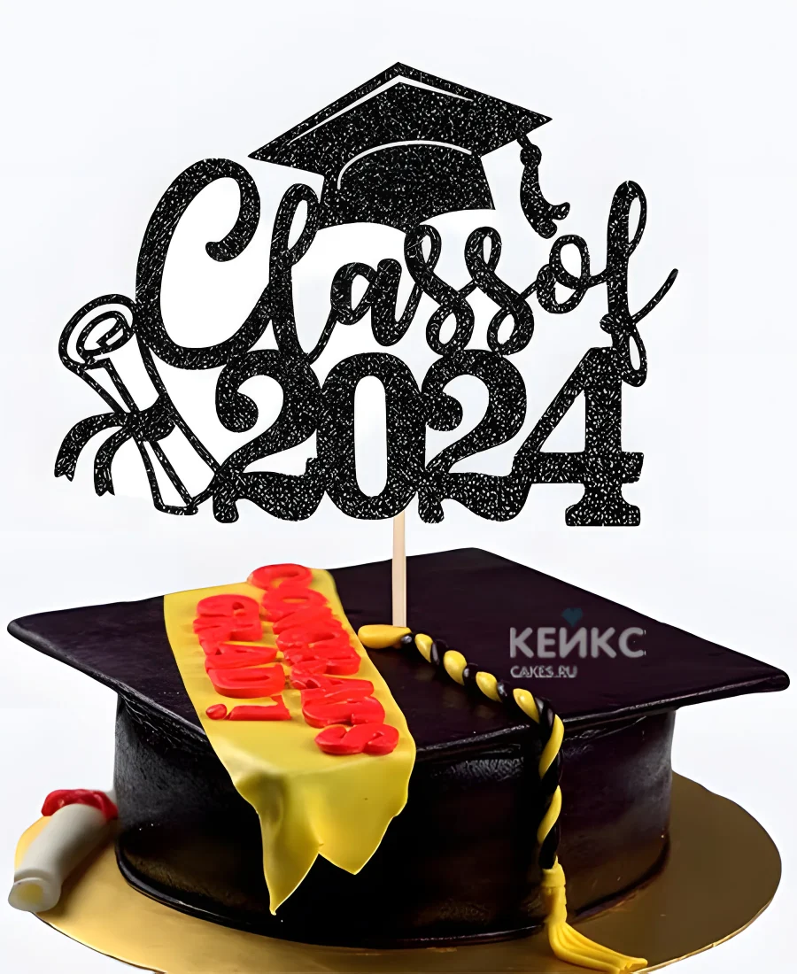 Торт на Получение диплома в форме шапочки с топпером