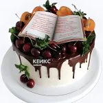 Этот торт создан для трогательного момента — последнего звонка. На белоснежном фоне красуется реалистичная фотопечать открытой книги, окруженная сочными ягодами. Яркие малиновые и голубые акценты добавляют праздничности, а нежные кремовые узоры подчеркивают торжественность момента. Книга символизирует завершение школьного этапа, а ягоды — сладость воспоминаний. Простое, но выразительное оформление делает торт центром внимания на любом празднике.