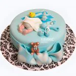 Торт на рождение ребенка с игрушками и младенцем скоро буду