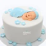 Торт на рождение ребенка с младенцем и цветочками скоро буду