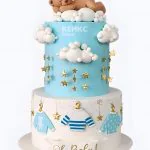 Торт на рождение ребенка с облаками и мишкой скоро буду