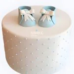 Торт на рождение ребенка с пинетками и бусинами скоро буду