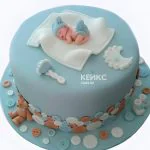 Торт на рождение ребенка с пуговицами и младенцем скоро буду