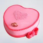 Торт на розовую свадьбу с сердцем и бантом