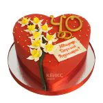 Торт на рубиновую свадьбу в виде сердца с цифрой 40
