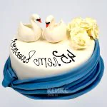 Милый торт на сапфировую свадьбу с лебедями и белыми розами