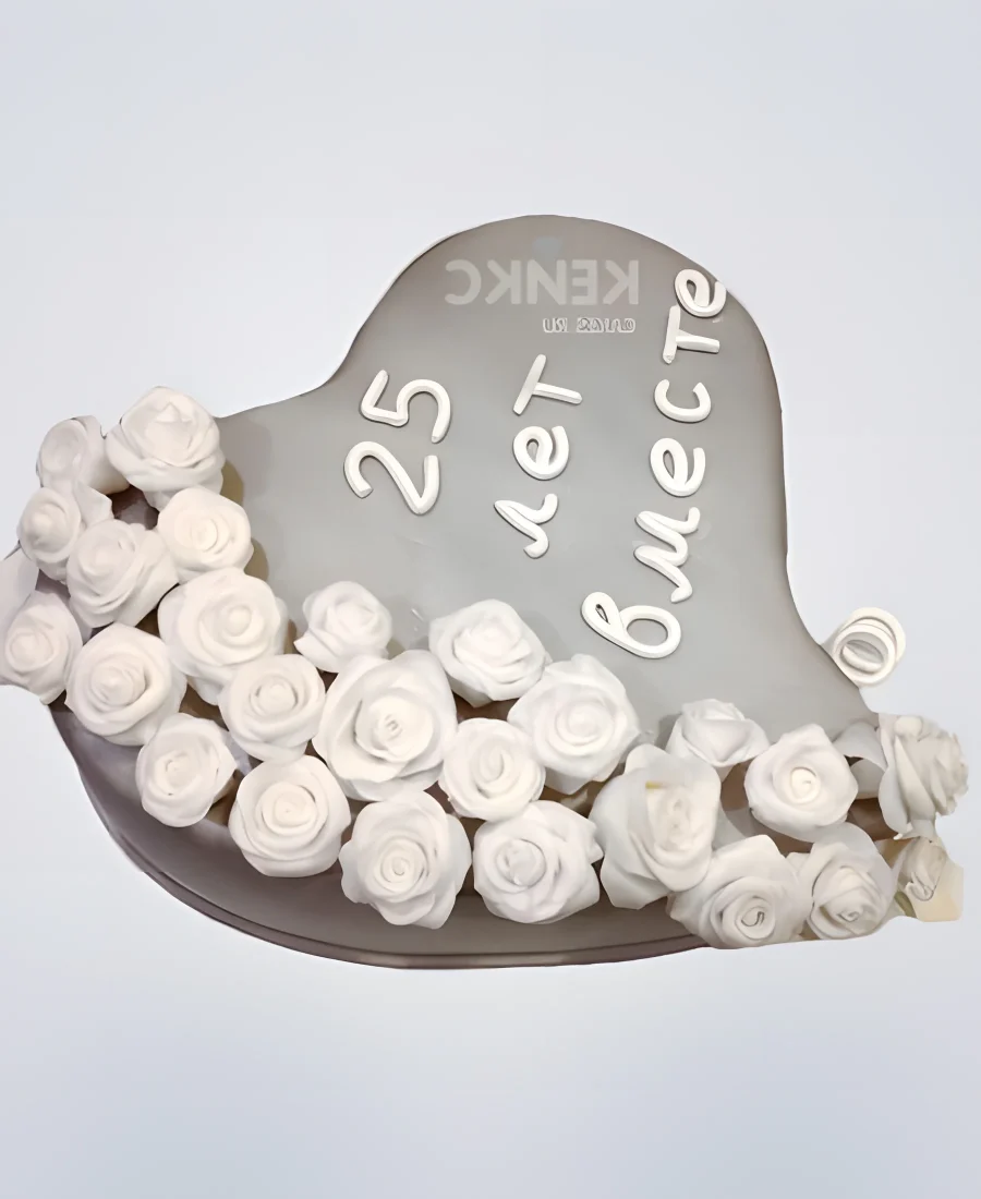 Необычный торт на серебряную свадьбу с живыми розами