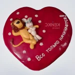 Торт на ситцевую свадьбу в виде сердца с фигурками