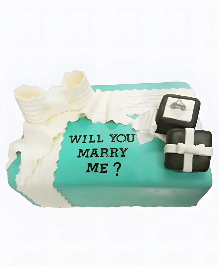 Торт на сватовство с кольцом и белым бантом