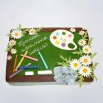 Торт на выпускной 4 класс Зеленая доска и ромашки