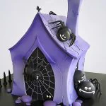 Торт на Хэллоуин в виде дома с пауками из мастики