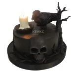 Необычный торт на Хэллоуин в виде ворона со свечой