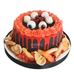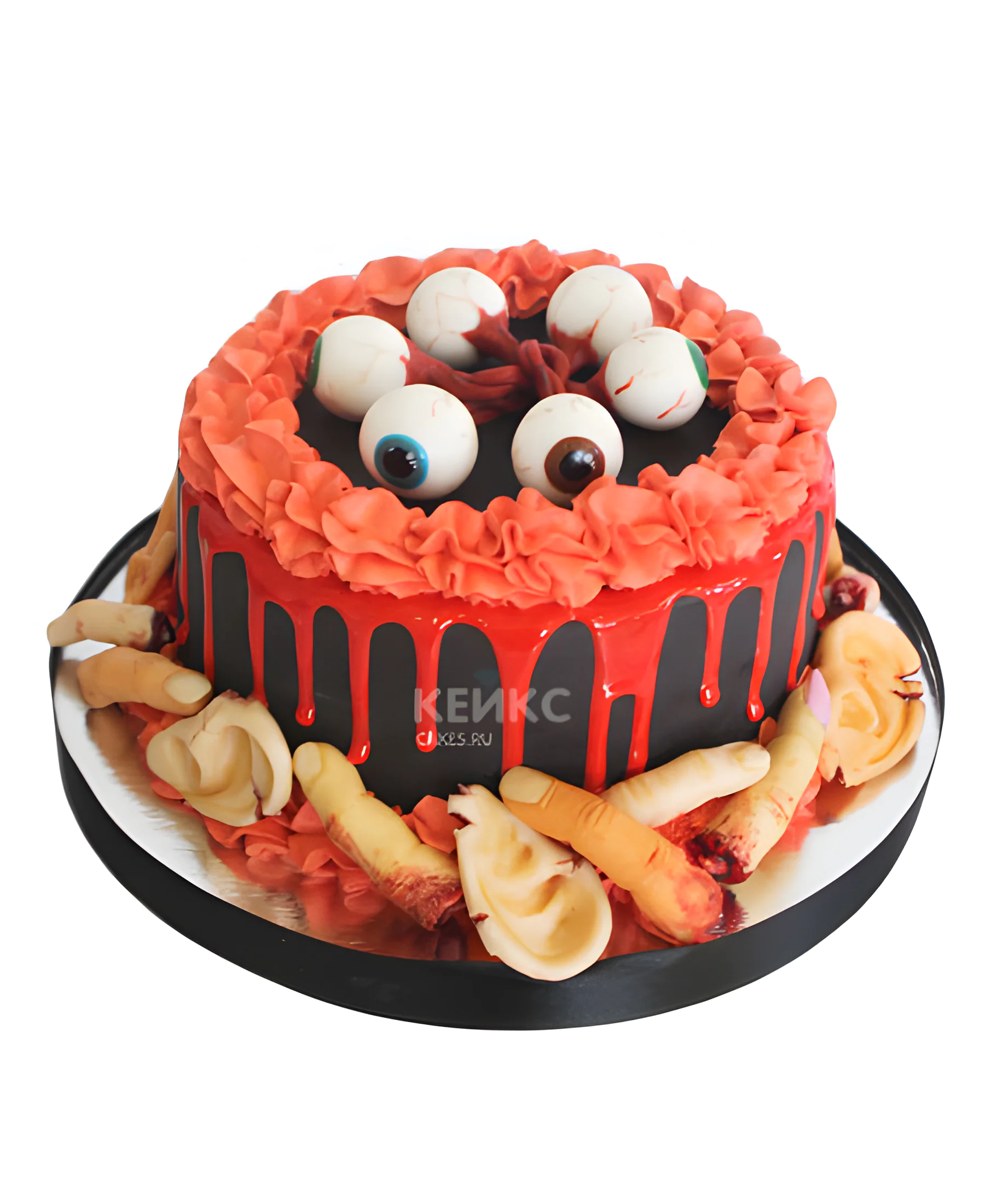Торт на Хэллоуин с глазами из мастики и красными подтеками
