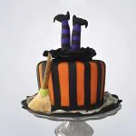 Забавный полосатый торт на Хэллоуин ножки ведьмы