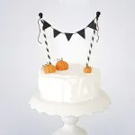 Белый торт на Хэллоуин с тыквами и черными флажками