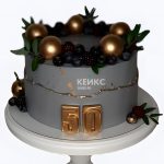 Торт на юбилей 50 лет с ягодами и золотыми шарами