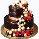Торт на юбилей 55 лет с ягодами и золотыми шарами