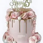 Торт на юбилей 75 лет с цветами и макарунами