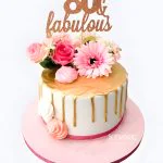 Торт на юбилей 80 лет с цветами и золотыми подтеками