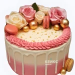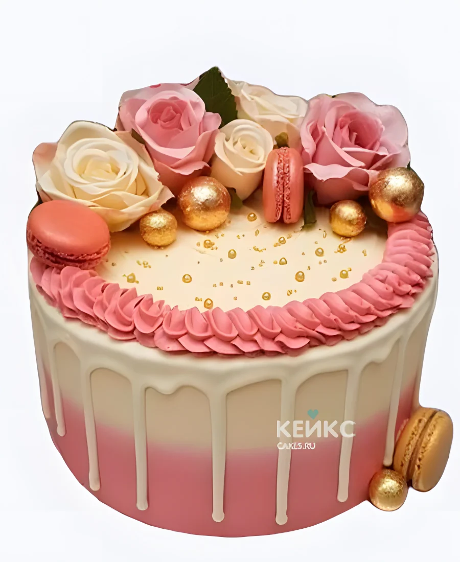 Торт на юбилей женщине с макаруни и цветами