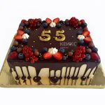 Прямоугольный торт на юбилей 55 лет с ягодным ассорти
