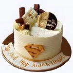 Торт на юбилей мужу супер герою с маленькими шоколадными плитками