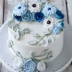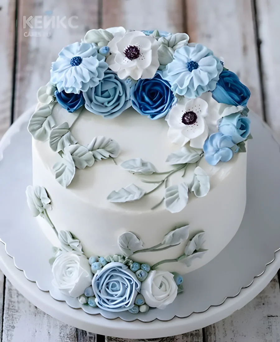 Белый торт из мастики украшенный цветами