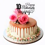 Торт на юбилей женщине 45 лет с подтеками и цветами